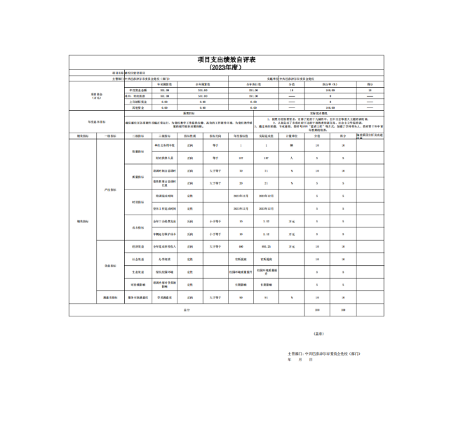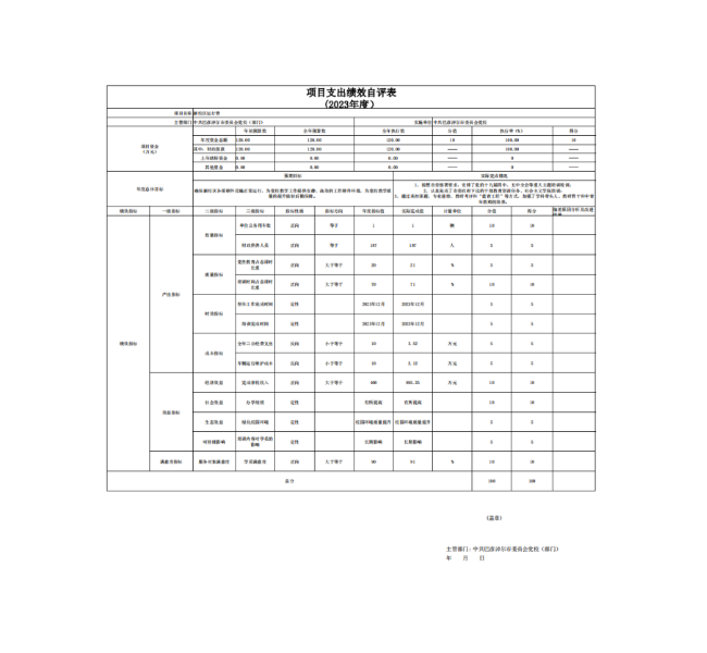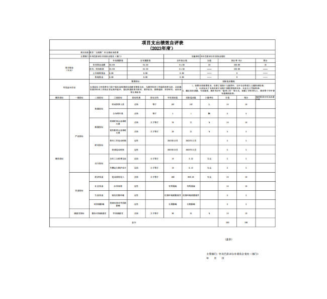 本项目绩效自评得分100分,等级为A。