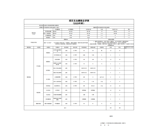 以巴彦淖尔市党的纪律教育主题课堂项目为例,该项目绩效评价综合得分为100分,绩效评价结果为“优”。重点项目绩效评价得分情况详见部门具体绩效评价结果。
