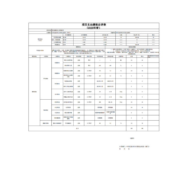 5)整体工作完成时间,目标值2023年12月,实际完成2023年12月,分值5,得分5。