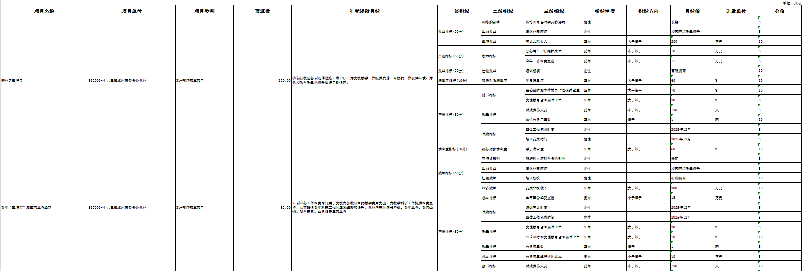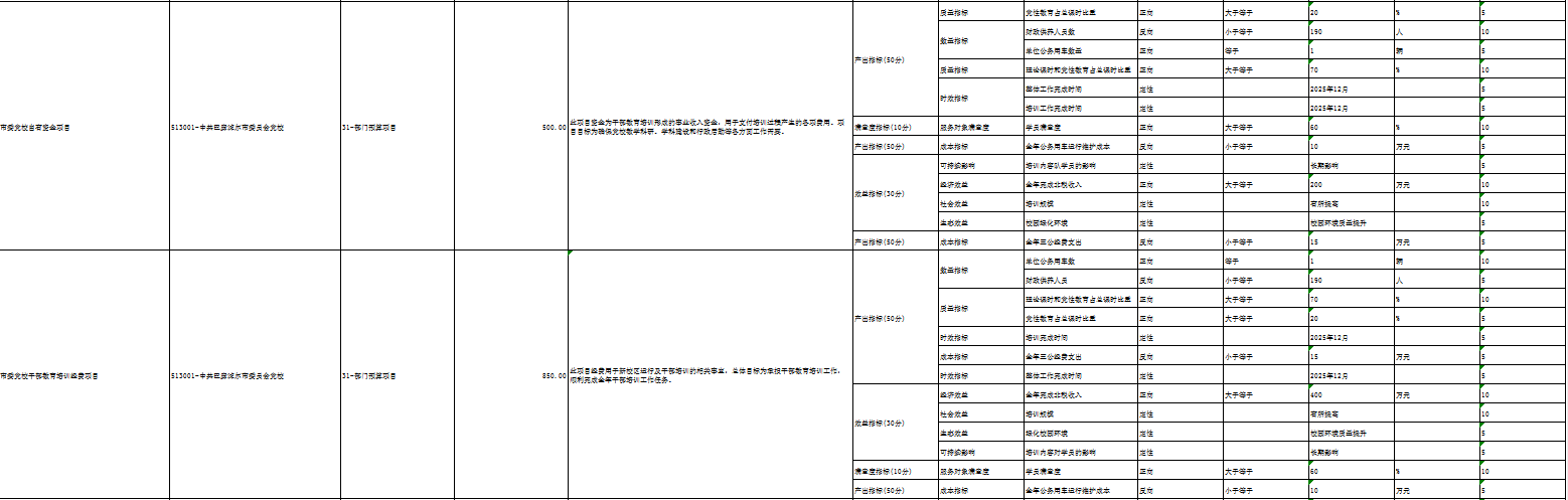 中共巴彦淖尔市委员会党校部门2025年度填报绩效目标的预算项目 4 个,公开项目 4 个,公开项目占全部预算项目的 100 %。公开填报绩效目标的项目预算 1532 万元,占全部项目预算的 100 %。