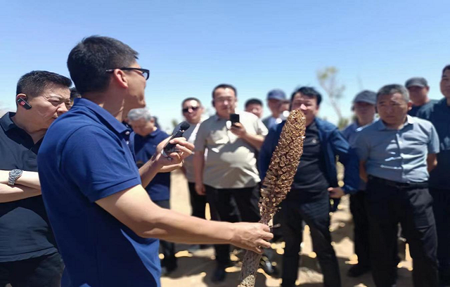 进修班学员们先后到85万千瓦光伏+生态治理示范区、王爷地肉苁蓉种植基地、中国林科院沙林中心实验场等地观摩学习。每到一处,学员们认真听取情况介绍,详细了解磴口县对防沙治沙工作所付出的努力,学习磴口县防沙治沙工作的先进做法与经验,深刻感受防沙治沙“磴口模式”的作用及成效。